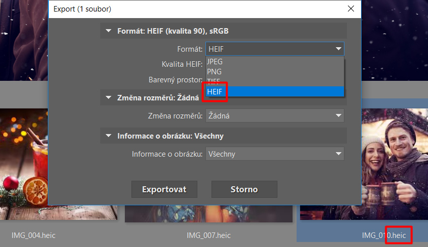 Podrobné informace o HEIF a postup, jak ho v ZPS X zprovoznit, najdete na této stránce (v angličtině).